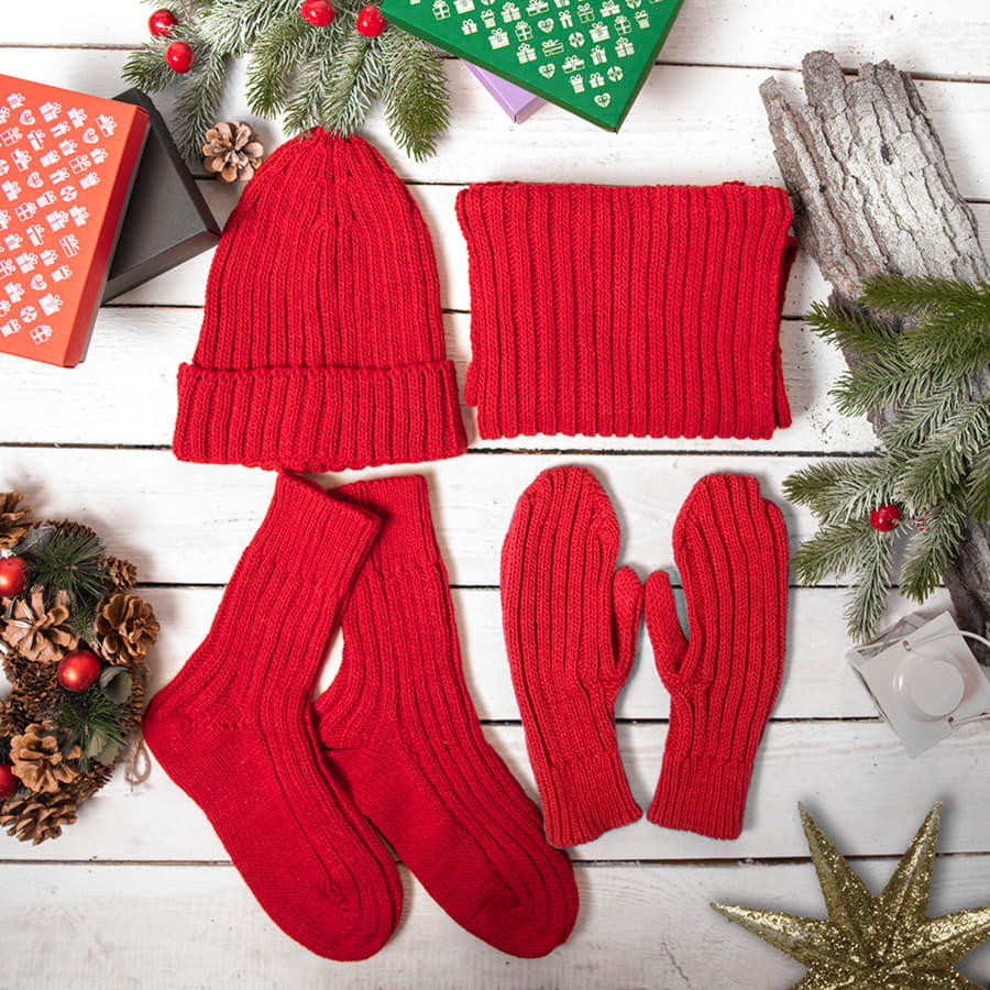 Набор подарочный НАСВЯЗИ©: шапка, шарф, варежки, носки, красный