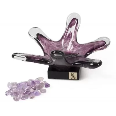 Самыми яркими предметами в коллекции Ric Art стали подставки из художественного стекла и аметиста. Неповторимость фактуры и рисунка делает уникальным каждое изделие. Такая подставка для мелочей позволит украсить интерьер любого офиса или кабинета, а использованная в качестве подсвечника поможет создать неповторимый романтический вечер.