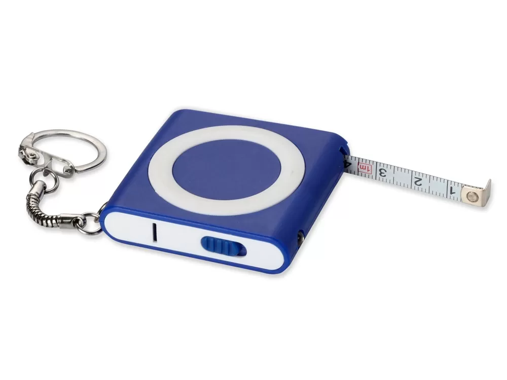 Брелок-рулетка с фонариком. 1 м., синий/белый