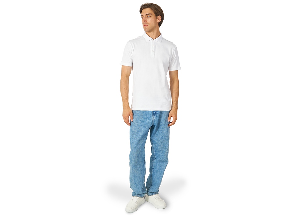 Поло из плотного пике 200гр, планка с застежкой на 3 пуговицы в тон с гравировкой бренда. Горловина внутри обработана тесьмой из основного полотна, разрезы в боковых швах.