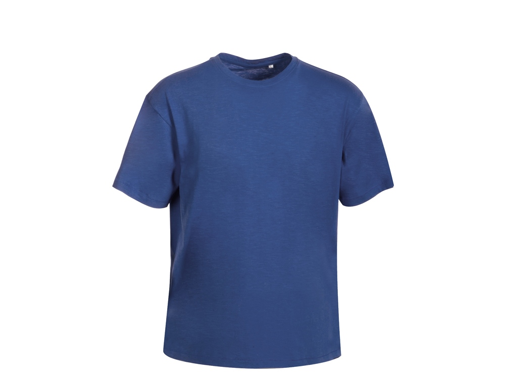 Полотно футболки имеет необычную структуру - с протяжками, но при этом гладкую поверхность, что обеспечивает идеальную поверхность для нанесения: прямая печать, трафаретная или термотрансфер прекрасно ложатся на такое полотно. Декоративная отстрочка по низу рукавов и изделия, а также отстрочка по горловине позволяют футболке дольше сохранять форму.