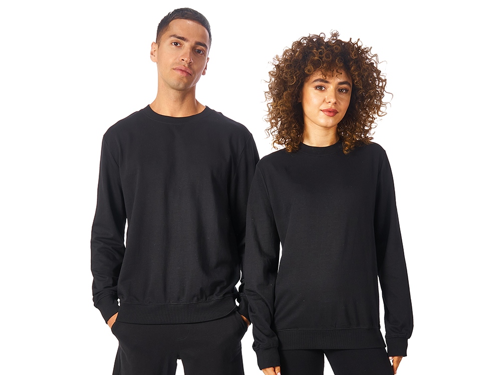 Свитшот выполнен из хлопкого френч терри с петельками на изнаночной стороне. В этой модели — комфортно и удобно, это базовый предмет гардероба, который станет прекрасным мерчем, ведь компактное переплетение полотна позволяет нанести изображение идеальным образом.