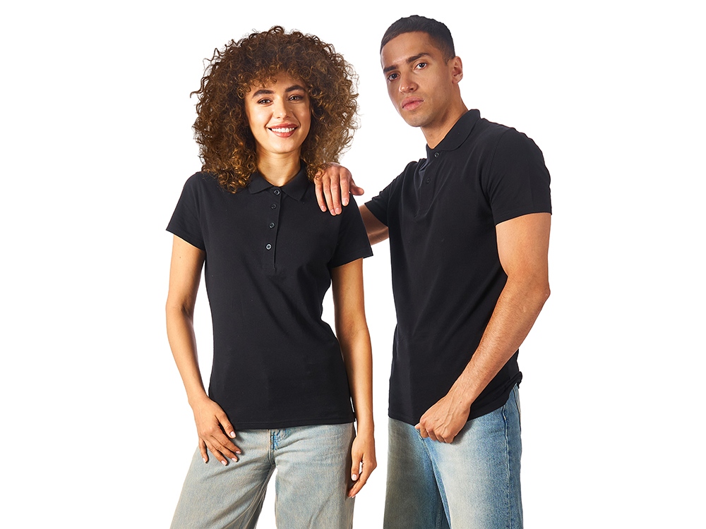 Рубашка-поло First. Воротник 1х1. Обшивка внутри воротника. Мужская и детская модели с 2 пуговицами, женская - с 4 пуговицами. Пуговицы с гравировкой в тон. Пике, 100% хлопок. 160 г/м2.