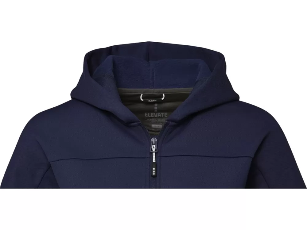 По центру спереди расположена обратная застежка-молния. Карманы спереди. Внутренняя сторона покрыта ворсом. Петля для подвешивания с фирменной символикой. Горловина из атласа. Внутреннее выходное отверстие для медиа с направляющей для шнура. Полумесяц. Главный лейбл нанесен методом термоприклеивания, удобным для размещения рисунков на ткани.