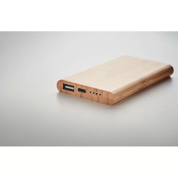 Энергетический банк емкостью 4000 мАч в бамбуковом чехле. Выходной ток DC5V/2A. В комплект входит световой индикатор и кабель USB с разъемом типа C.
