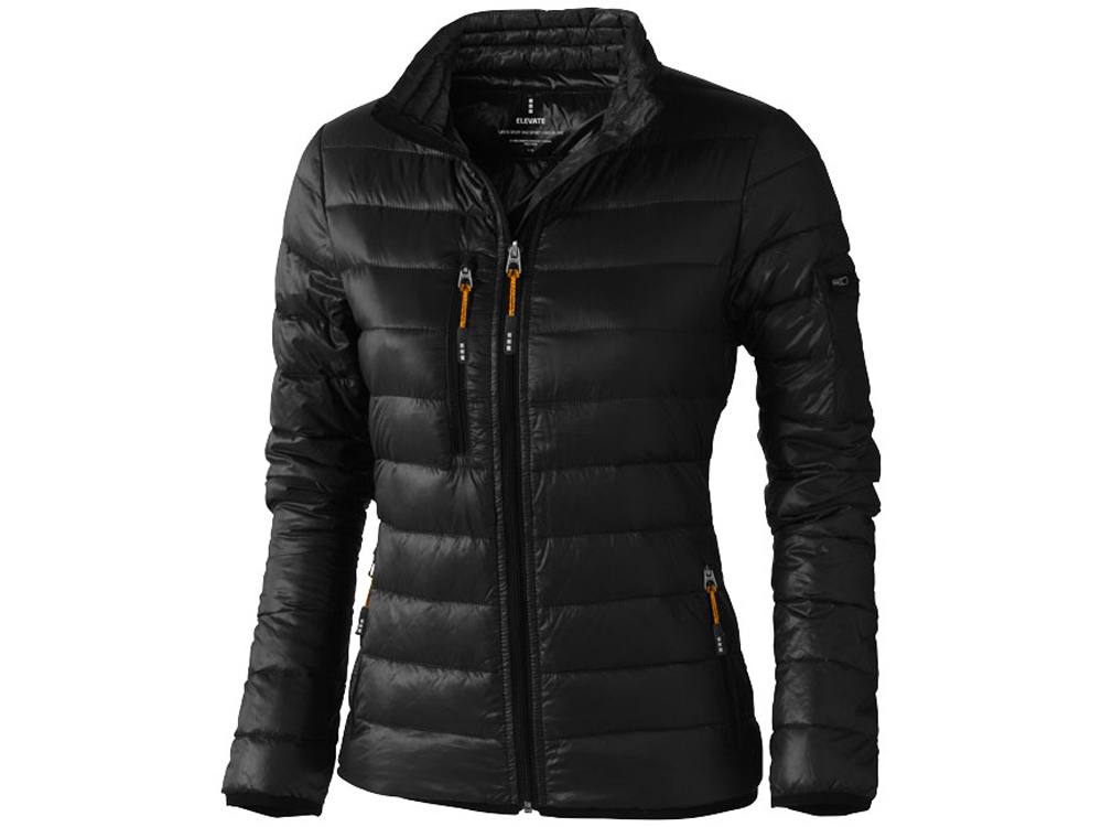 Легкая женская куртка - пуховик Scotia. Ткань не пропускает пух. Карманы для рук и нагрудный на молнии. Карман на рукаве на молнии можно использовать для нанесения. Резинка на манжетах и внизу куртки. Ремешки на собачку (второй комплект в цвете антрацит).Внутренний противоветровой клапан и защита подбородка. Ткань дышащая, ветронепроницаемая и влагоотталкивающая. Легкий пуховик. Трикотаж, 100% нейлон, 20D. 90% пух и 10% перо. 115 г/м².