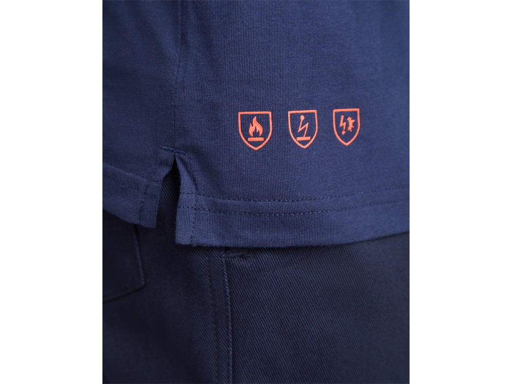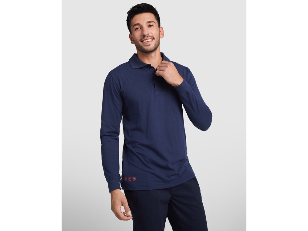 Рубашка·поло с длинным рукавом из огнеупорной ткани. Воротник и манжеты из риба 1x1. Потайная планка с застежкой на 3 пуговицы. Усиленные закрытые швы в воротнике. Боковые разрезы по низу.