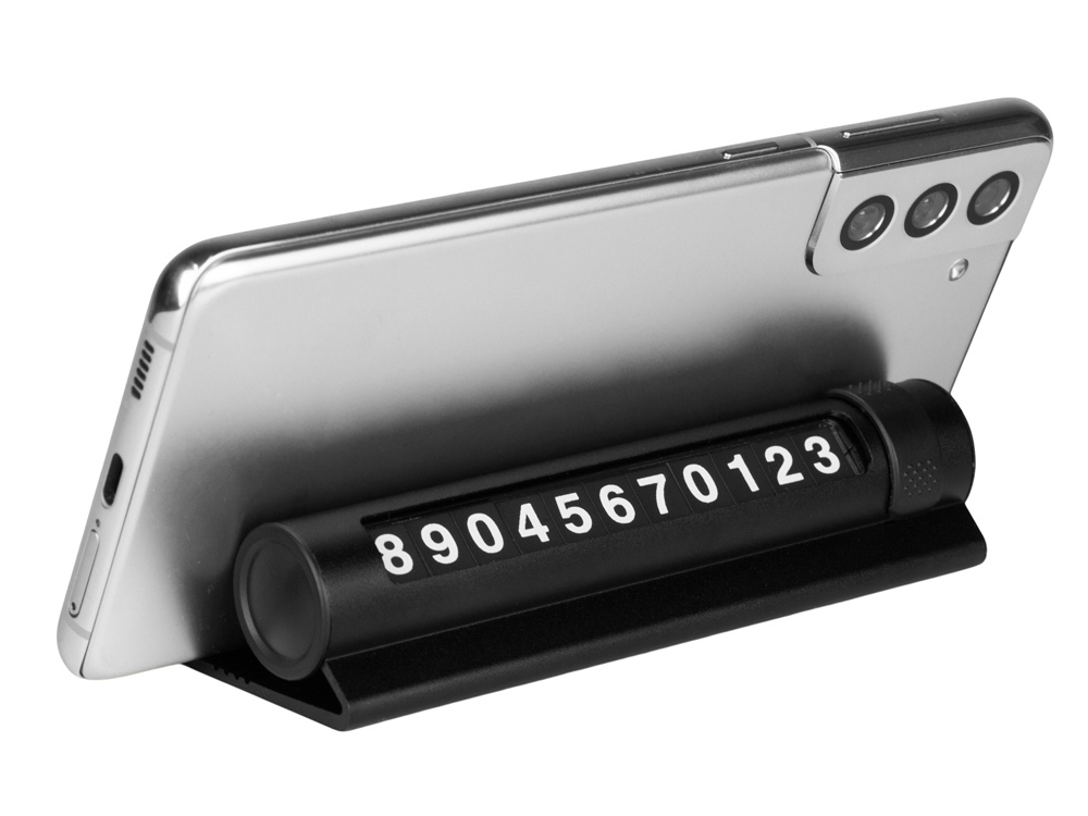 Парковочная табличка идеально подойдет для того, чтобы сообщить о вашем номере телефона водителям, которым может помешать автомобиль. Оборудована поворотным механизмом, что позволяет открыть/закрыть номер за секунду. Съемные магнитные цифры поставляются в комплекте, надежно крепятся на панели и не боятся тряски. При этом обратная сторона парковочной таблички выполняет функции подставки для телефона, который можно удобно установить на приборной панели. Для надежной фиксации в комплект приложены клеевые крепления.