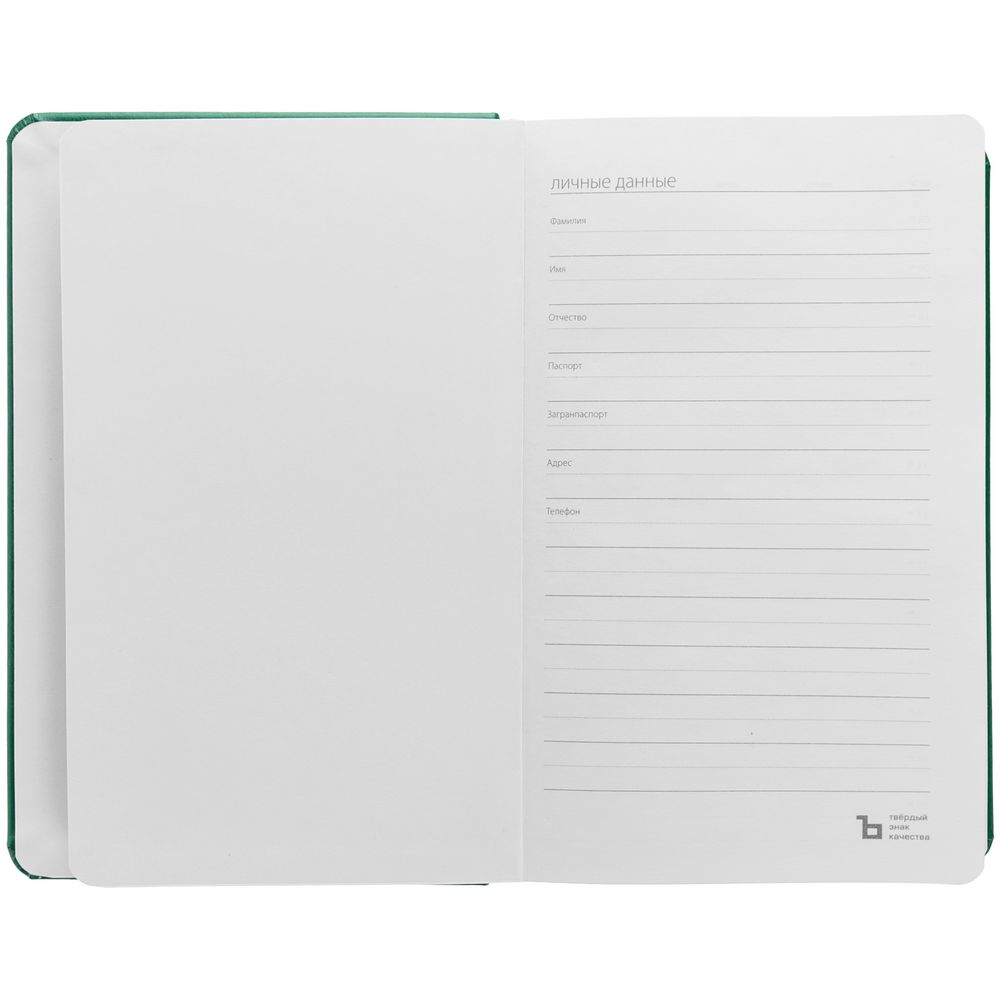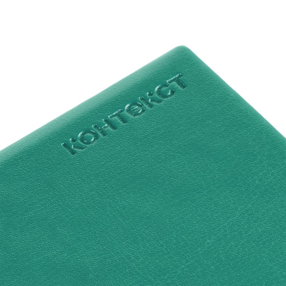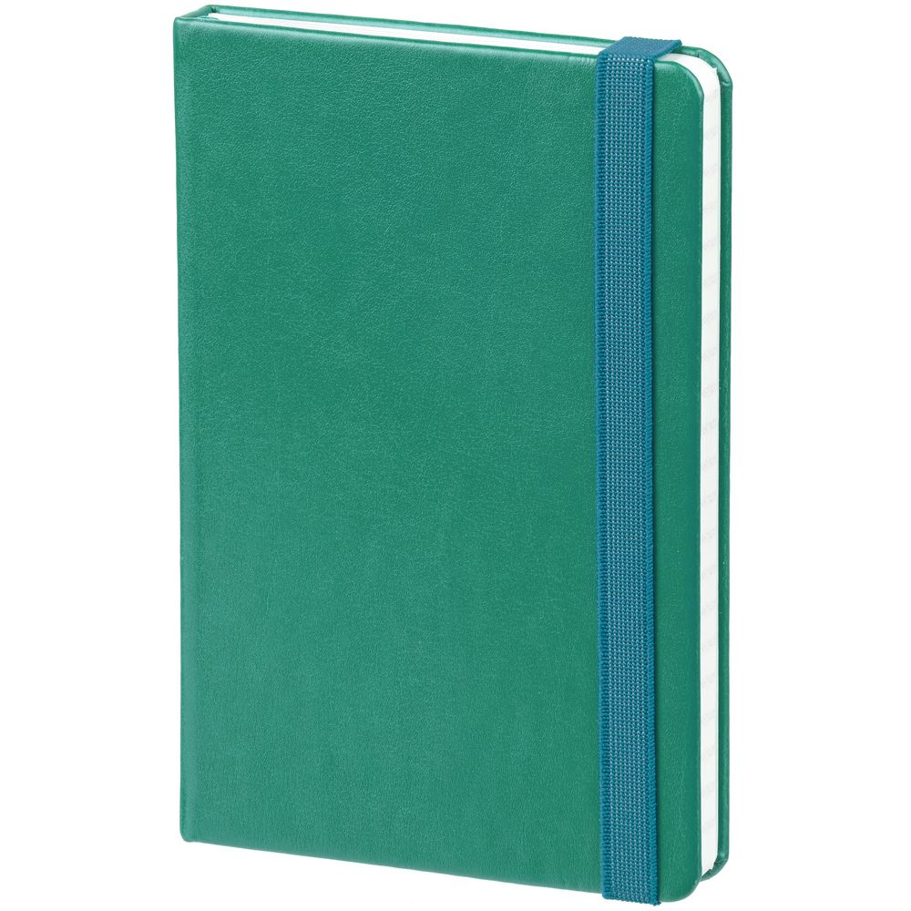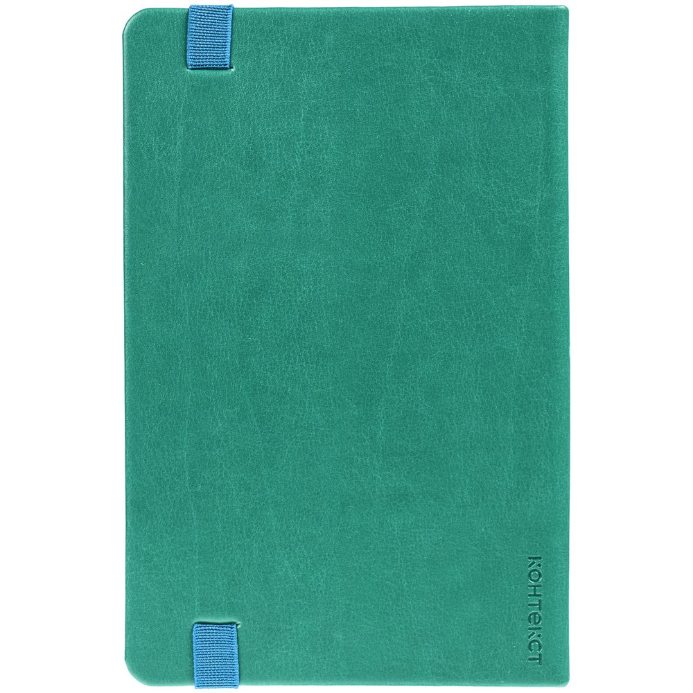 Ежедневник с твердой обложкой, выполнен из материала Waltz, бирюзовый, дополнен резинкой и ляссе в цвет обложки.