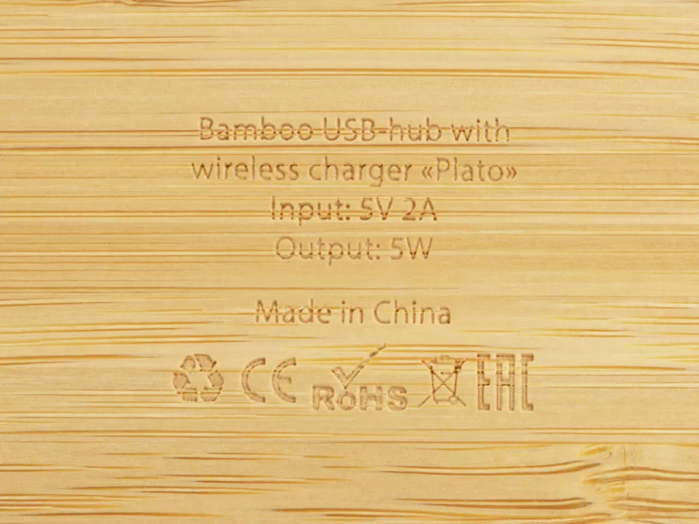 USB-хаб с беспроводной зарядкой из бамбука Plato