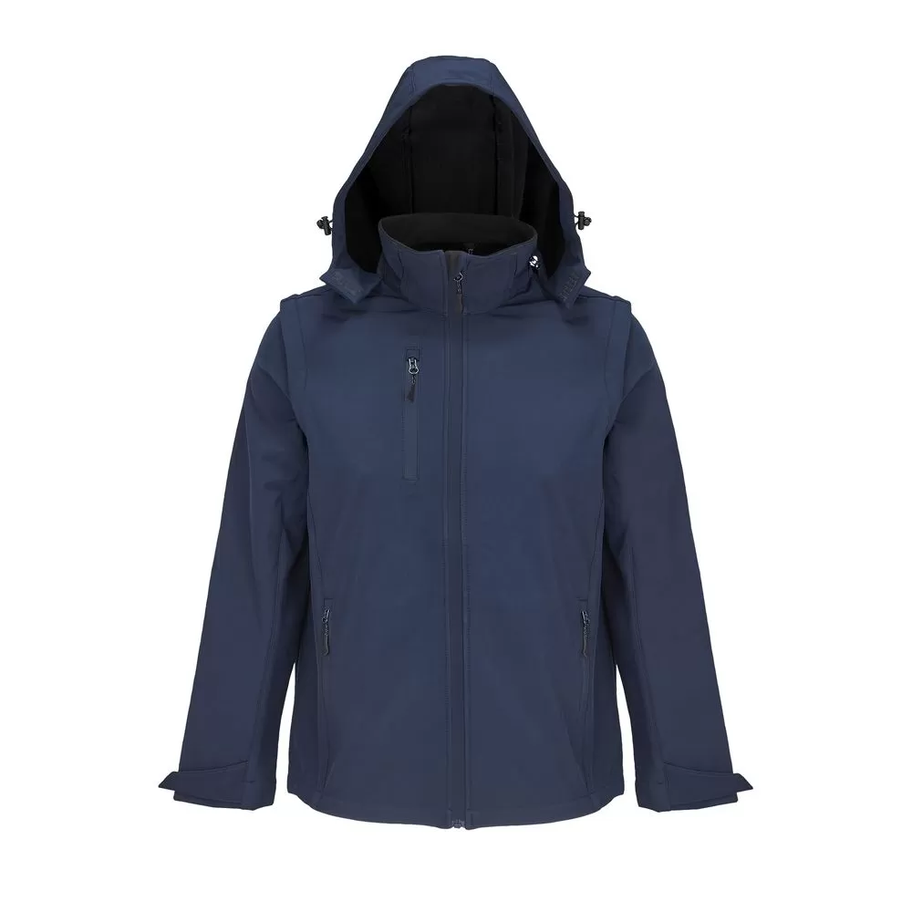 Влагоустойчивая и ветрозащитная куртка-трансформер из материала Softshell, выполненного из переработанного полиэстера. Отстегивающиеся рукава и капюшон позволяют выбрать ту конфигурацию, которая больше всего соответствует погоде за окном.