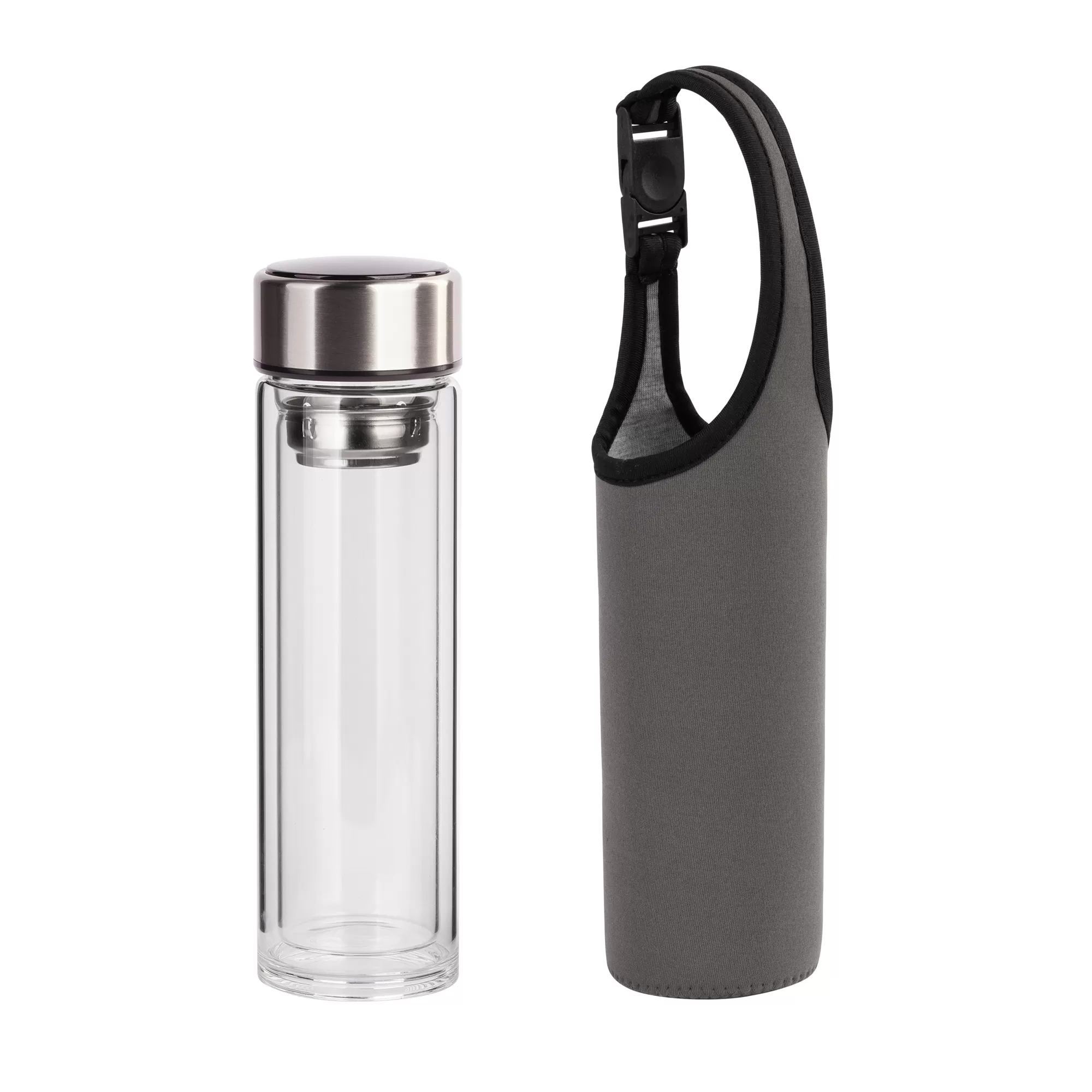 Заварочный термос "Остин" на 320 мл с двойной колбой из боросиликатного стекла - современный аксессуар, который удобно взять с собой на прогулку, в поездку или отдых. Неопреновая сумка-чехол не только защищает колбу, но и улучшает её температурные характеристики. Пользователям понравится герметичная крышка с дисплеем для контроля температуры содержимого. Чай или кофе удобно заваривать прямо в термосе, в жаркую погоду можно использовать его под освежающий коктейль или цитрусовую воду. В комплекте есть съемное сито из 304 стали для фильтрации содержимого.