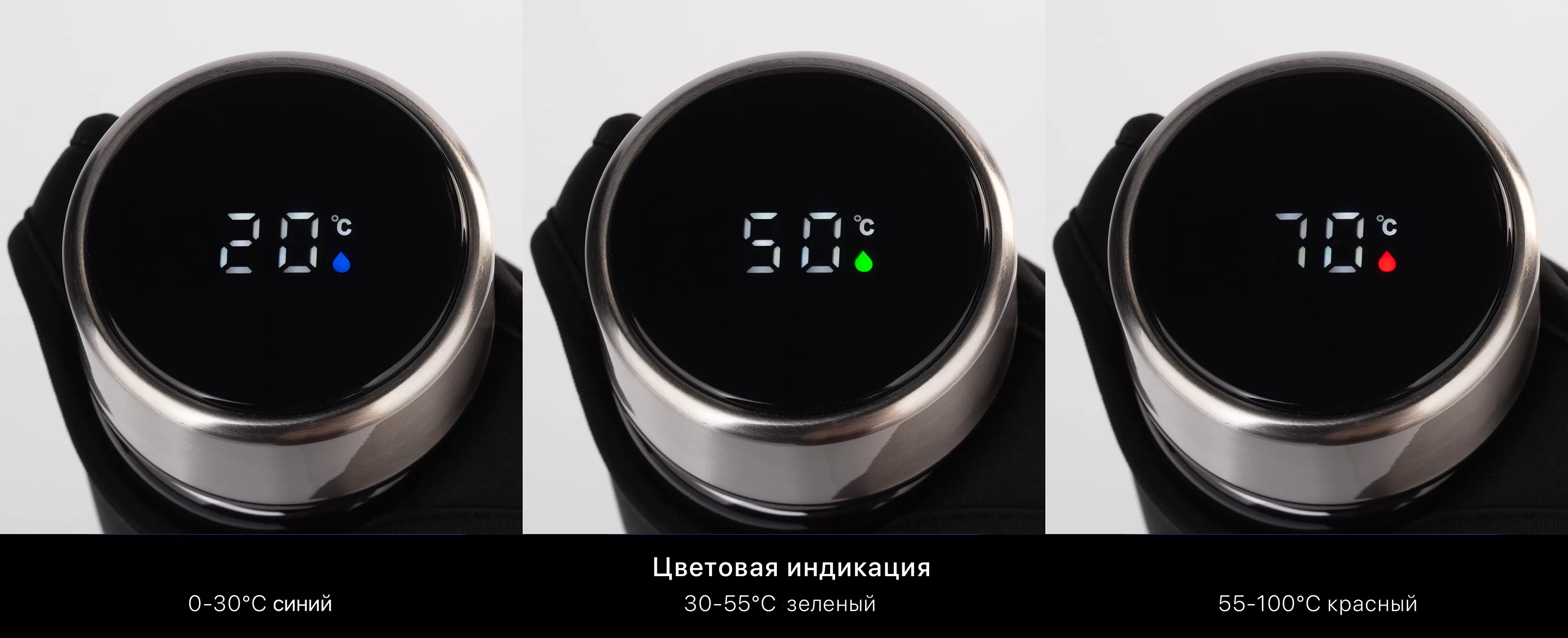 Дополнительная цветовая индикация значка для удобства контроля за температурой содержимого: