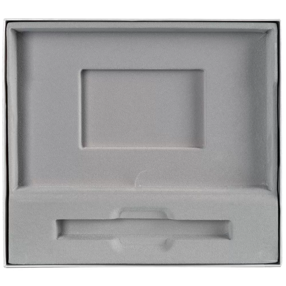 Коробка из переплетного картона, кашированного дизайнерской бумагой Majestic, с крышкой на магните и флокированным ложементом.