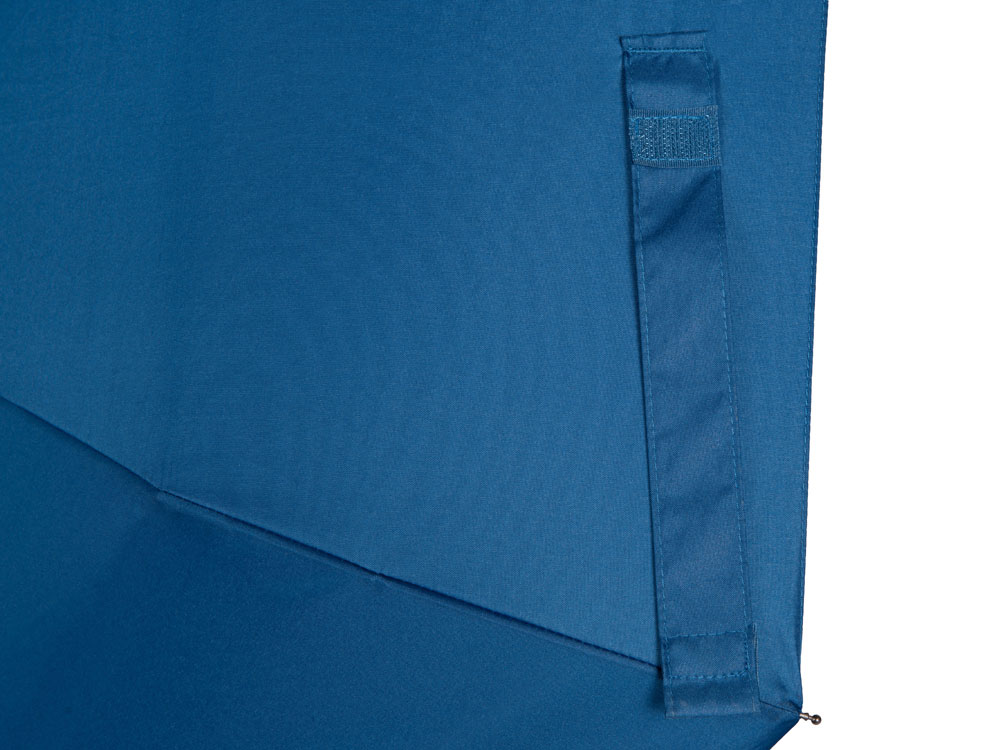 Купол зонта выполнен из переработанного пластика. Гибкие спицы из стекловолокна делают зонт стойким к порывам ветра. Удобная ручка софт тач. Фиксирующая купол застежка на липучке шириной 3 см - дополнительная опция для нанесения вашего логотипа.