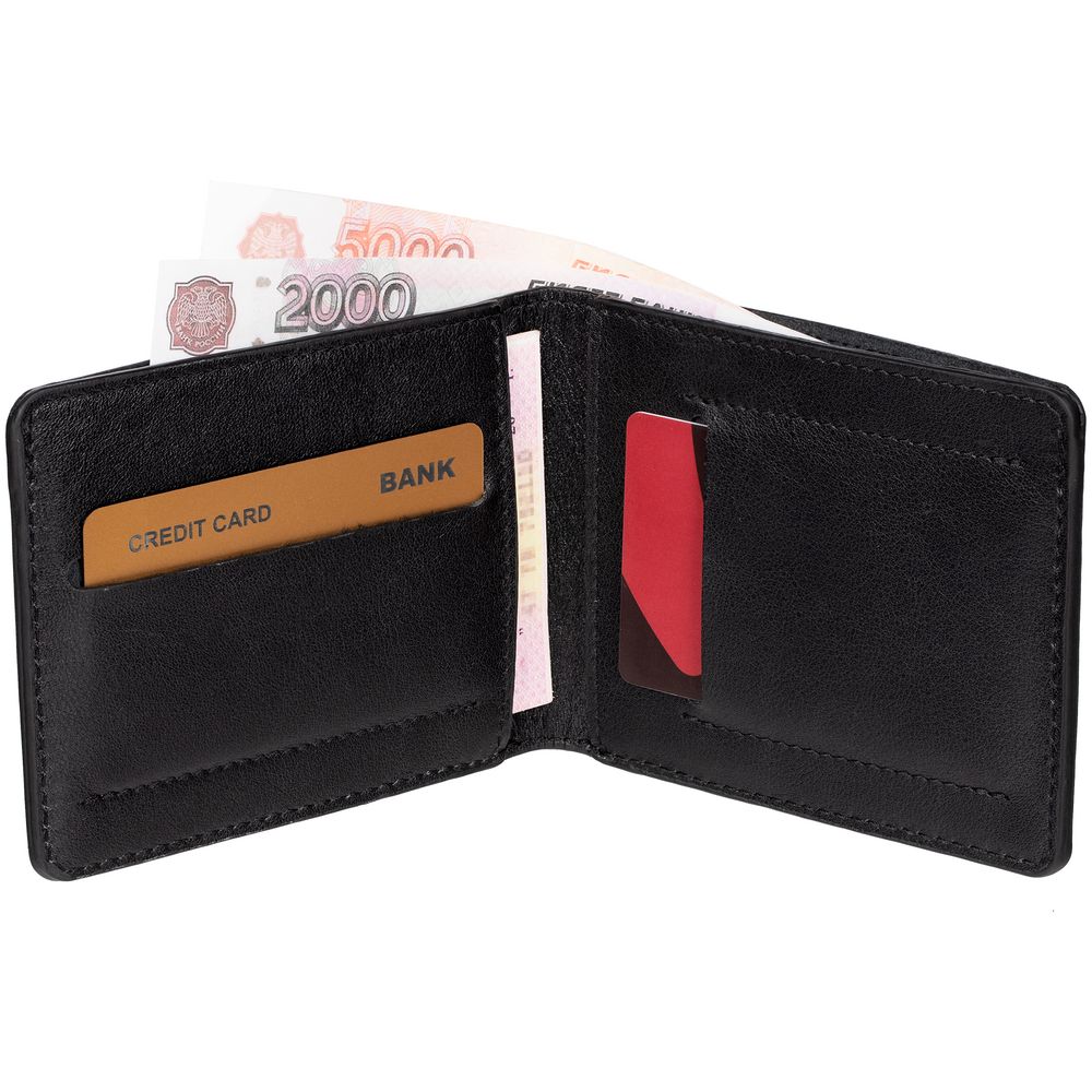 Рельефное изображение логотипа, выполненное методом конгревного тиснения, подчеркнет статус владельца и станет своеобразной печатью качества, подтверждающей изысканность и особенность изделия.- Отделение для купюр