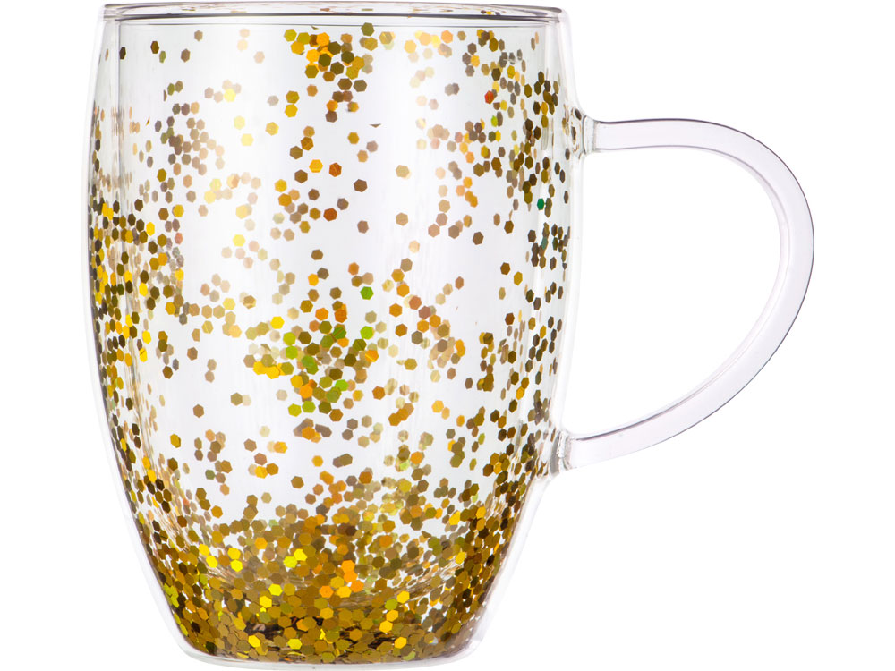 Кружка с двойными стенками с блестками, 360 мл, золотистый