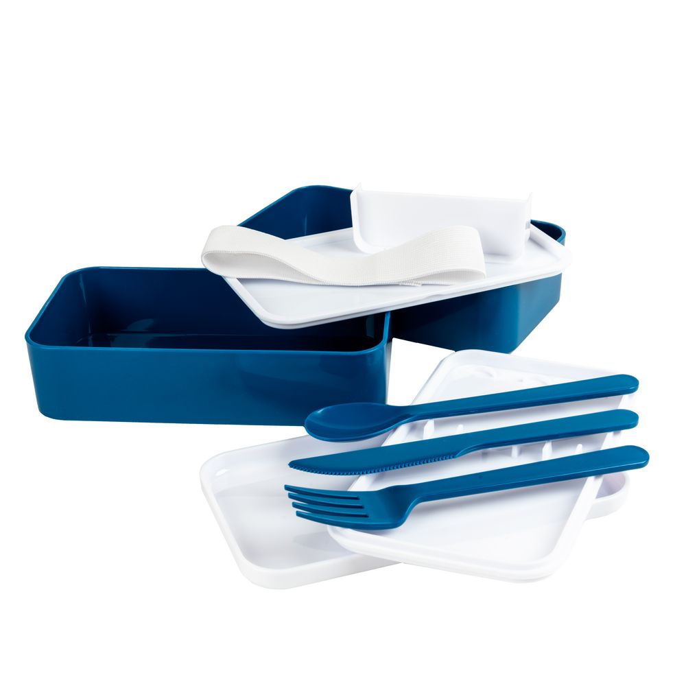 Ланчбокс Purе в удобном формате конструктора из 2 контейнеров по 500 мл не займет много места и позволит взять с собой полноценный обед. Контейнеры фиксируются друг над другом эластичным ремешком, но их можно использовать и по отдельности. В комплект также входит набор столовых приборов: вилка, нож и ложка.
