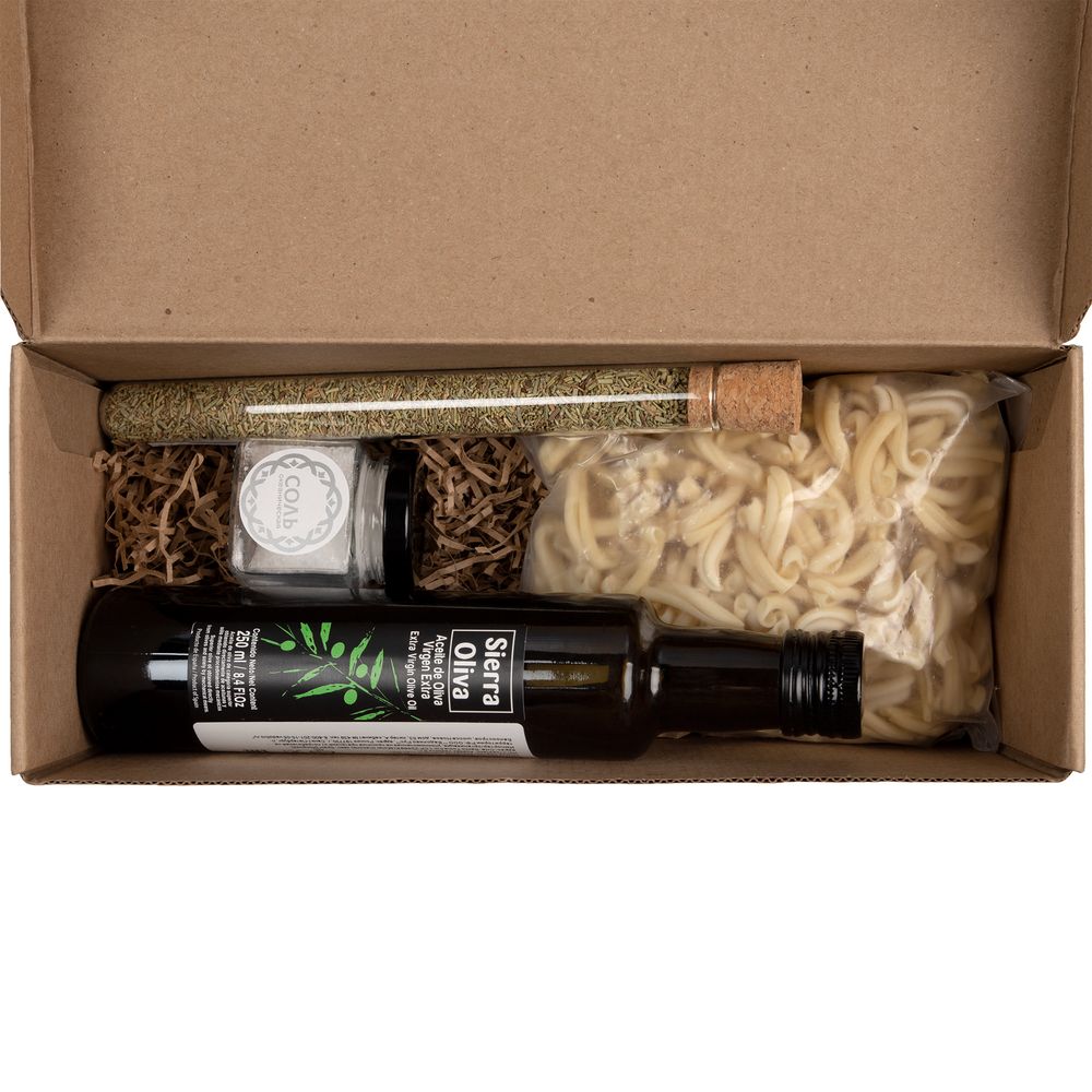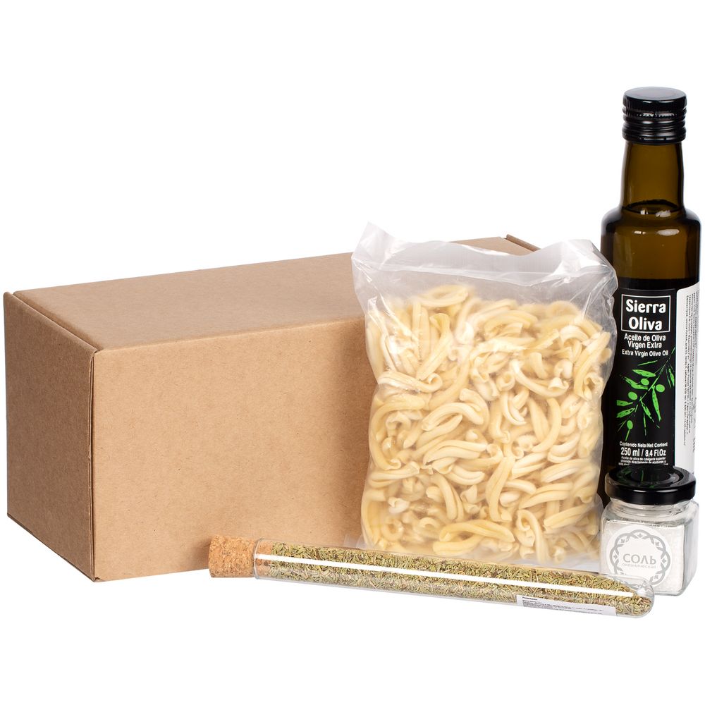 | Материал | соль - стекло, жестяная крышка; приправа - стекло, корковая пробка; коробка - микрогофрокартон; пакет для пасты - полипропилен |