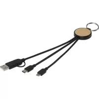 Кабель для зарядки Tres 3-в-1 с брелоком, коннекторами 1 type с, 1 USB type A и двойным совместимым коннектором 2-в-1 для устройств с ОС Apple® iOS и Android. В комплект входит брелок. Для зарядки устройств Apple подключайте кабель стороной без контактов; для зарядки устройств с ОС Android подключайте кабель стороной с контактами. Алюминий.