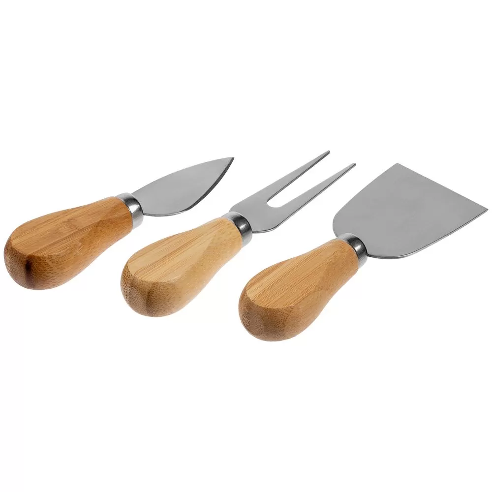 В набор входят доска из бамбука, два керамических соусника, вилка, листовидный нож для сыра твердых сортов, нож-лопатка для мягкого сыра.