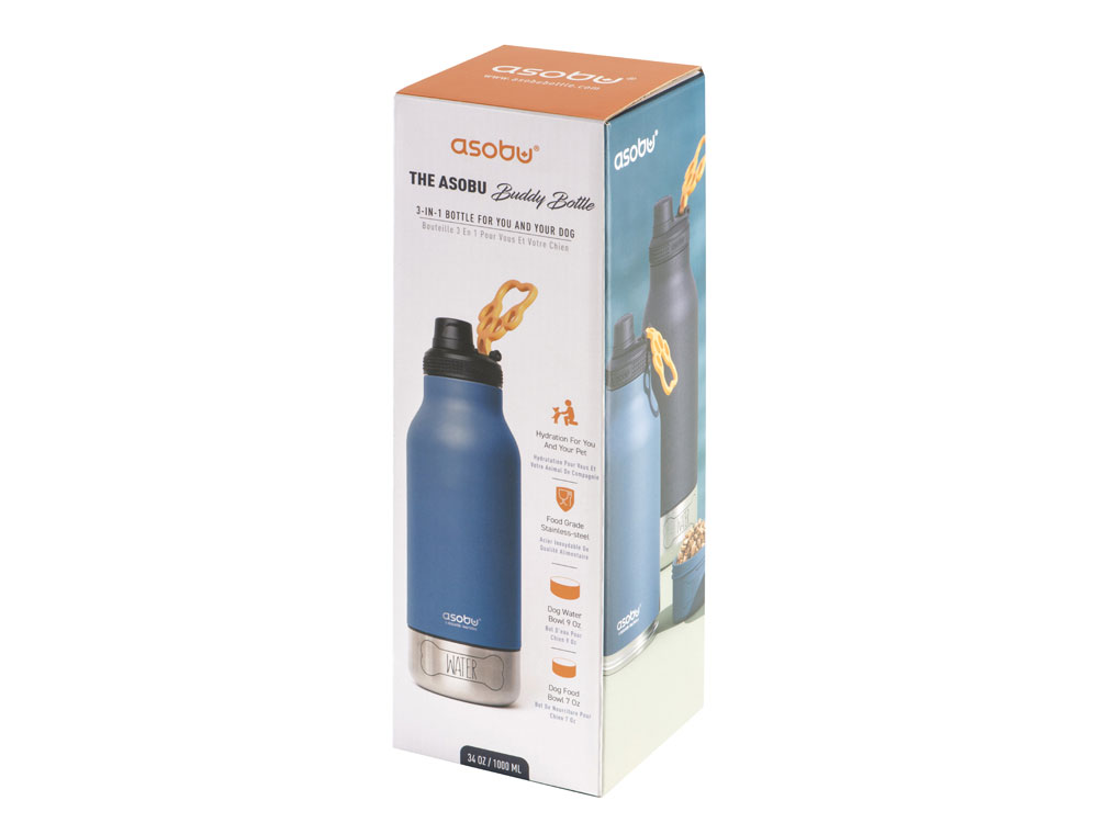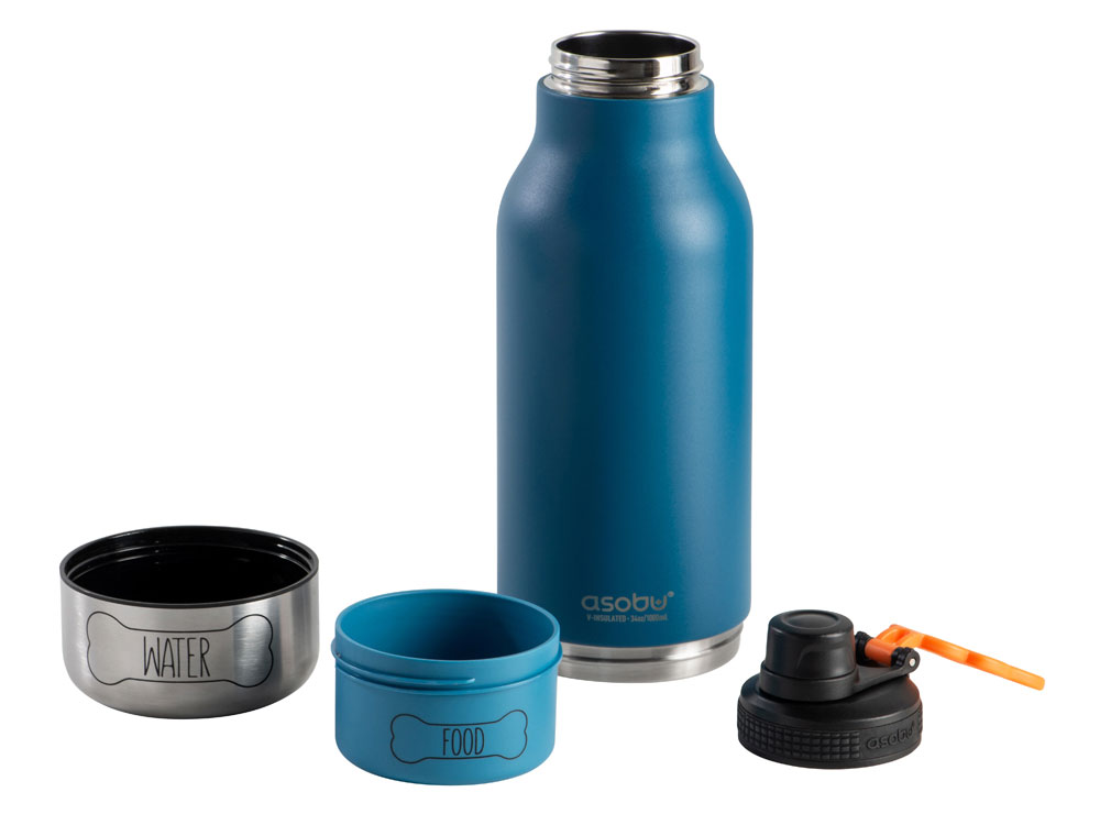 Вакуумный термос Buddy 3-в-1 со съемными мисками для питомцев, 1000 мл, синий
