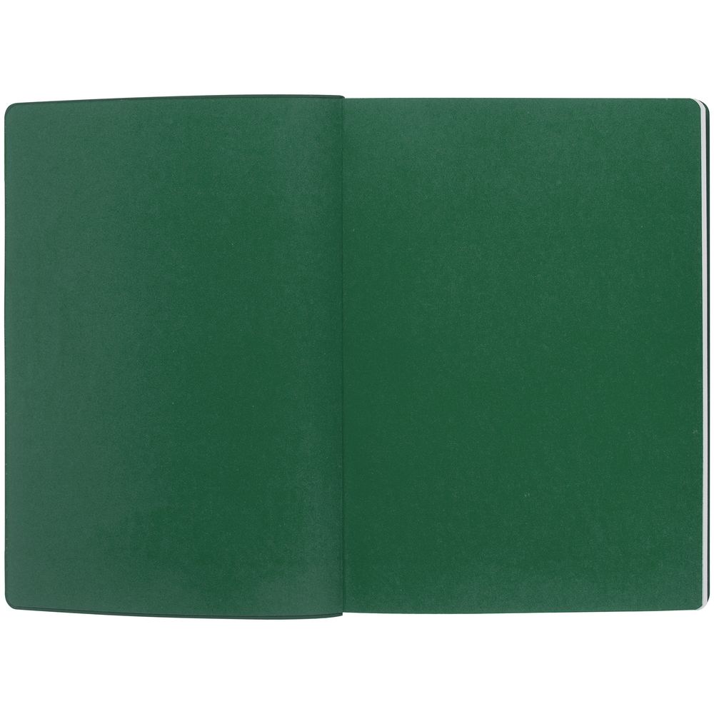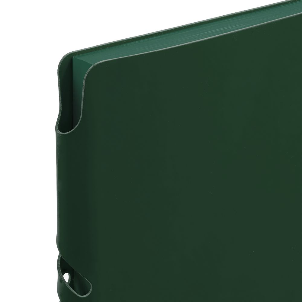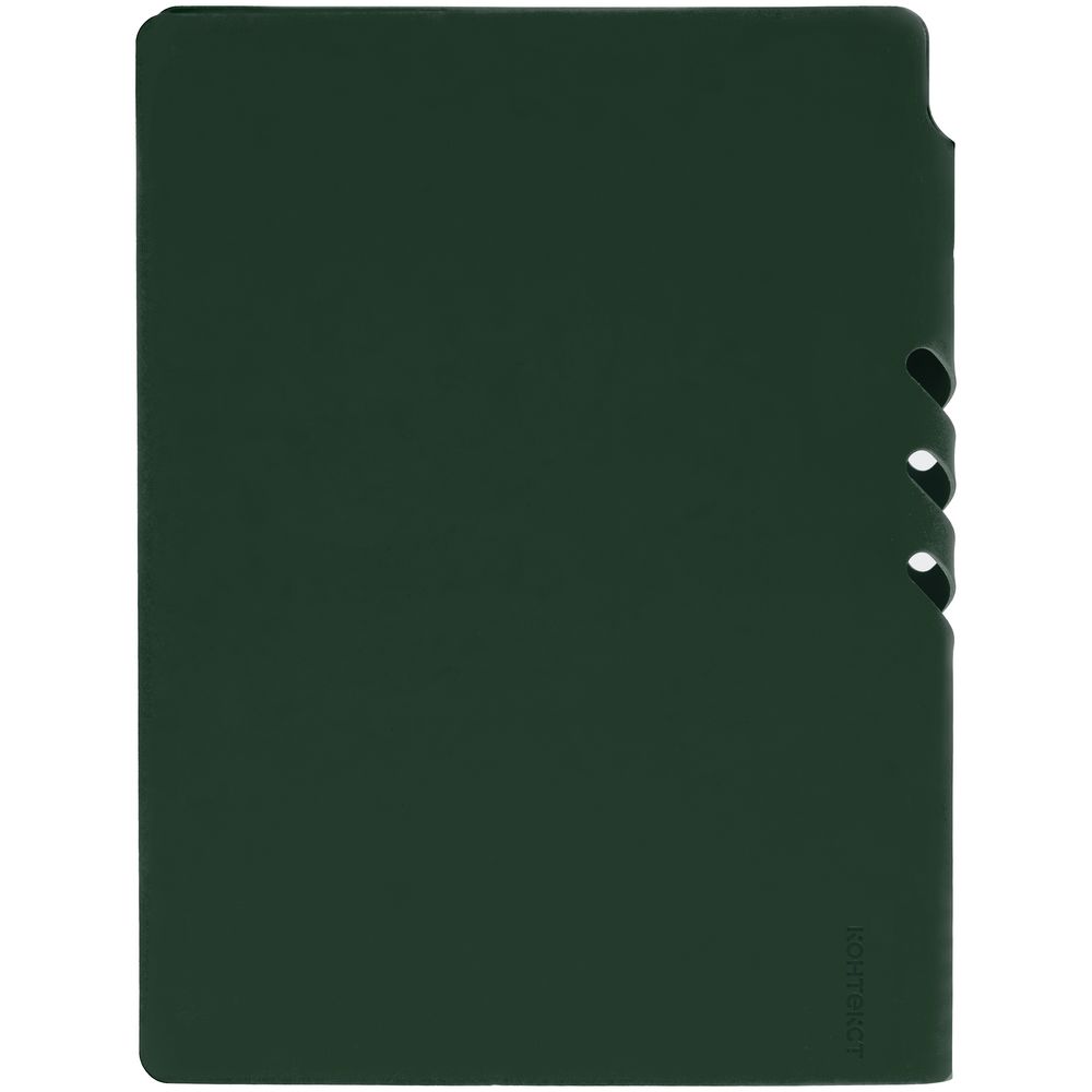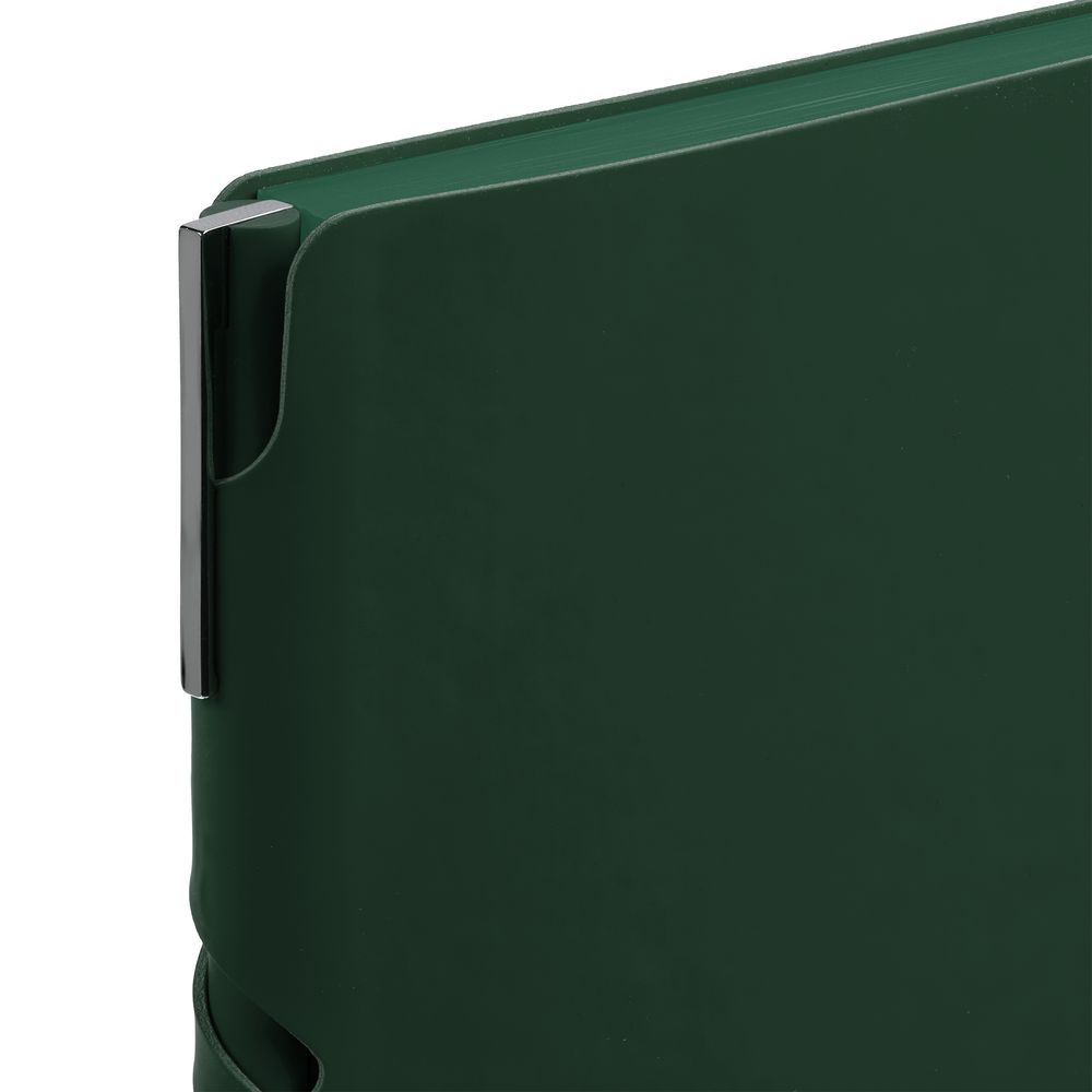 Гибкая обложка выполнена из материала Soft Touch Ultra, зеленый FF. Внутри корешка — специальное место для крепления ручки размером до 15х0,9 см.