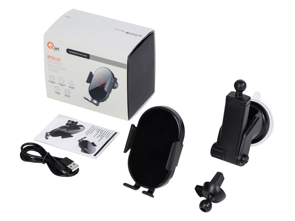 OptIQ Lite от Qjet — беспроводное зарядное устройство, которое автоматически фиксирует и надежно удерживает смартфон, когда вам нужно поместить его на зарядку одной рукой. Для этого коснитесь сенсорной кнопки на корпусе устройства справа или слева и поместите смартфон на нижнюю подставку зарядного устройства. Инфракрасный сенсор считывает присутствие смартфона на устройстве и дает сигнал держателям сдвинуться, после чего они надежно фиксируют телефон, самостоятельно подстраиваясь под его размер.