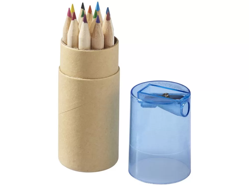 Набор из 12 маленьких карандашей в картонном стакане с точилкой.