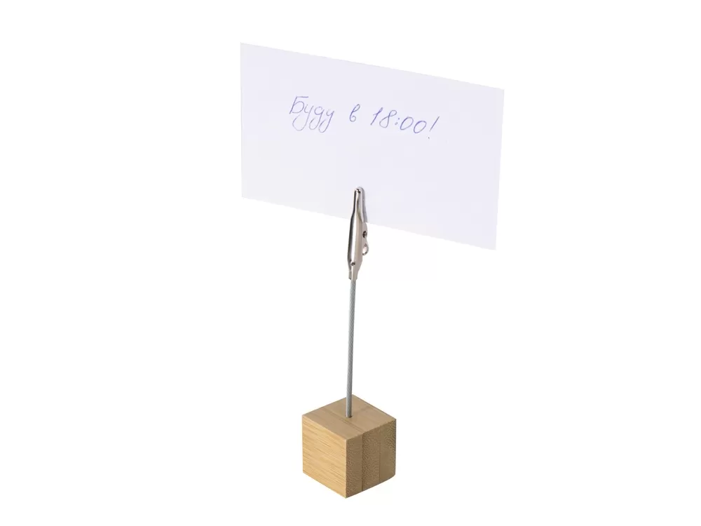 Стильный и лаконичный держатель для документов из бамбука. Благодаря ему самые важные напоминания или фотографии родных и близких всегда будут рядом на рабочем столе. Логотип можно нанести на одну или несколько граней сразу.