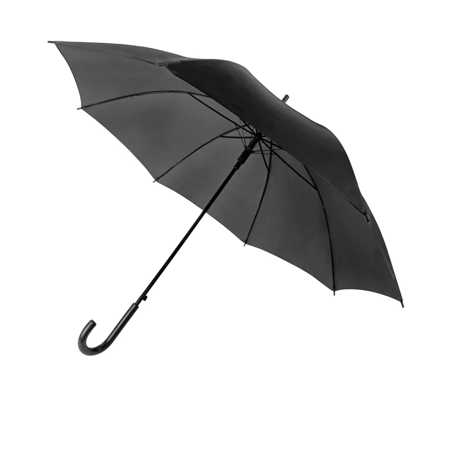 Базовая модель зонта, удобная и надежная. Автоматическое открытие, черная рама, ручка в цвет купола. Поставляется без чехла
