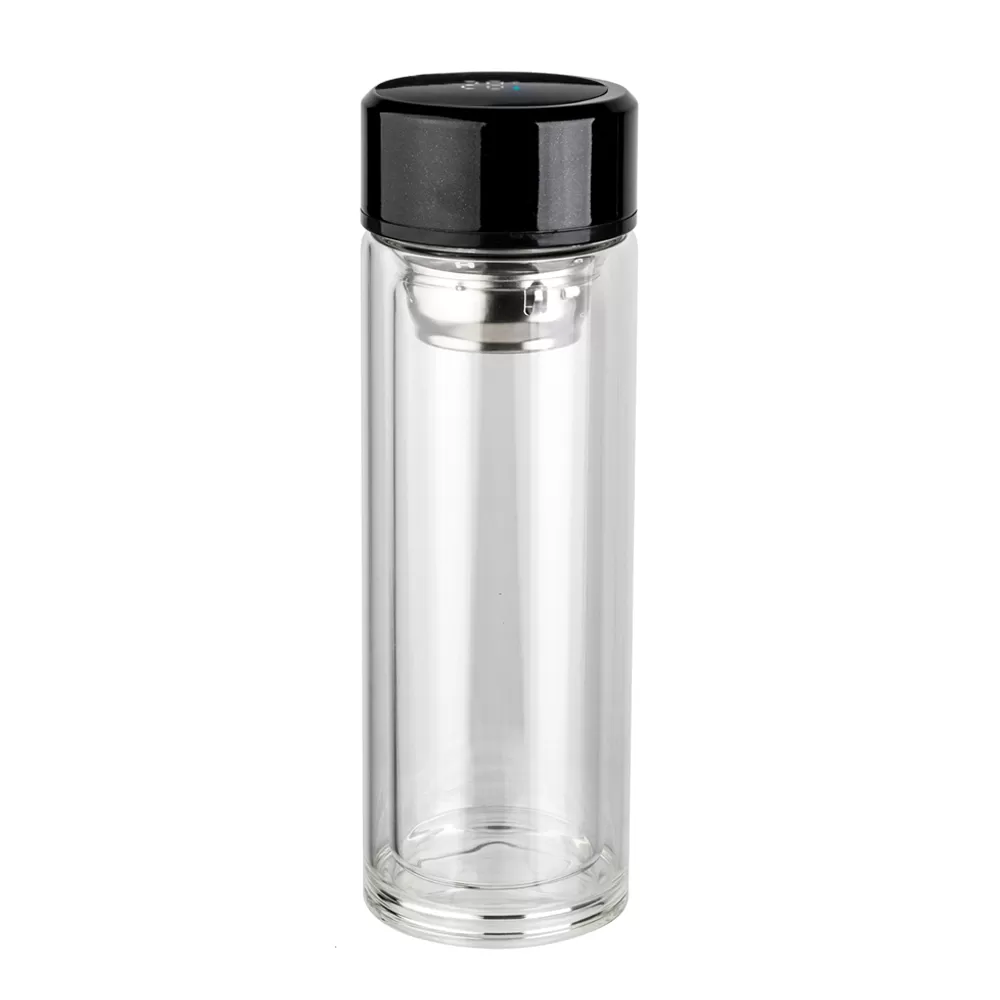Светодиодный дисплей укажет температурный режим содержимого напитка. Емкость батареи дисплея рассчитана на 78000 касаний. Объем бутылки 350 мл. Термос стеклянный c дисплеем Marcus выполнен из сверхпрочного боросиликатного закаленного стекла. Основное преимущество материала в том, что не разобьется и не обожжет горячим напитком Ваши руки. Внутри бутылки находится инфьюзер, который упростит процесс заваривания чая. Просто засыпьте заварку в инфьюзер, залейте кипяток в нижнюю часть бутылки, соедините, напиток готов.