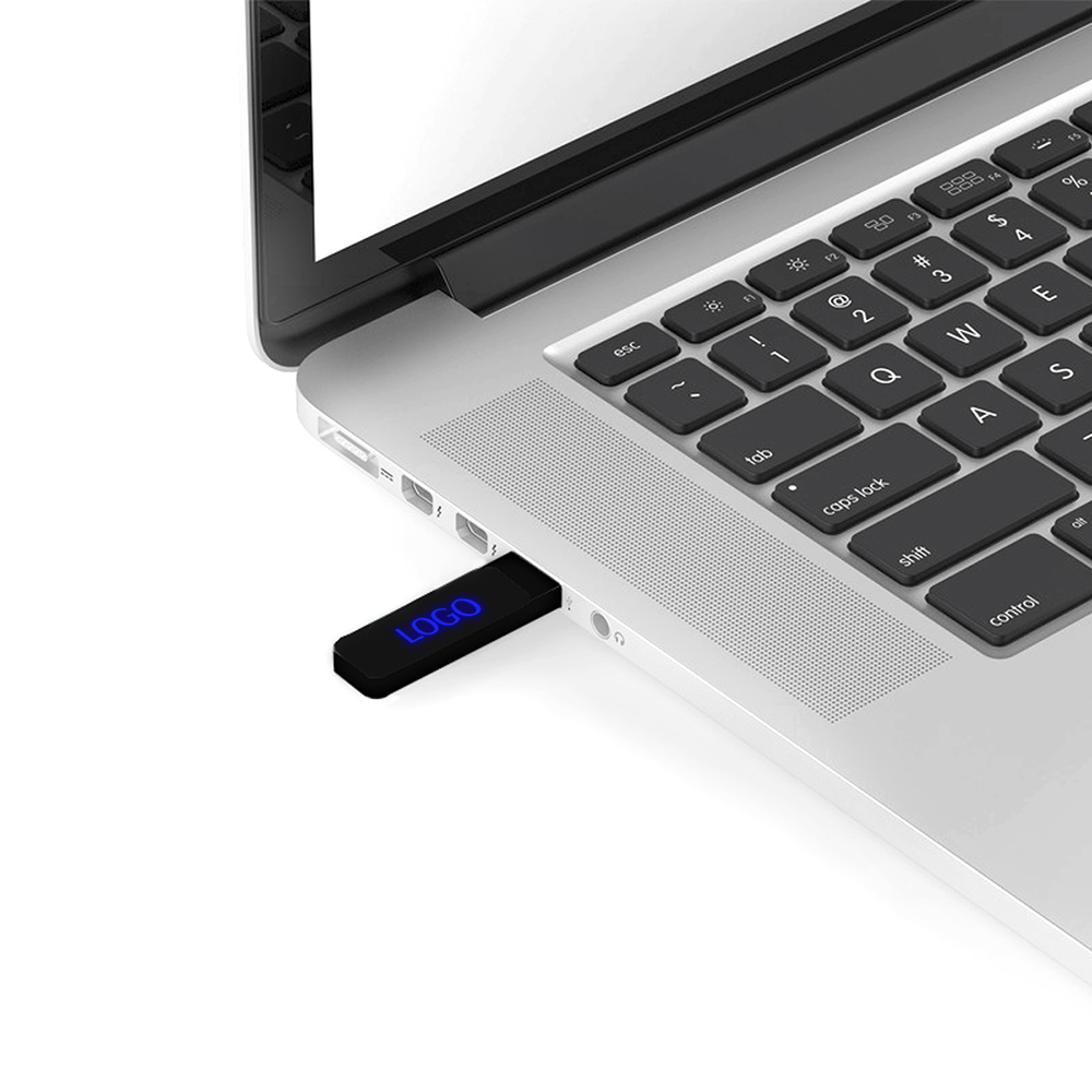 Флешка на 16 Гб, интерфейс 2.0. Синяя подсветка логотипа после гравировки