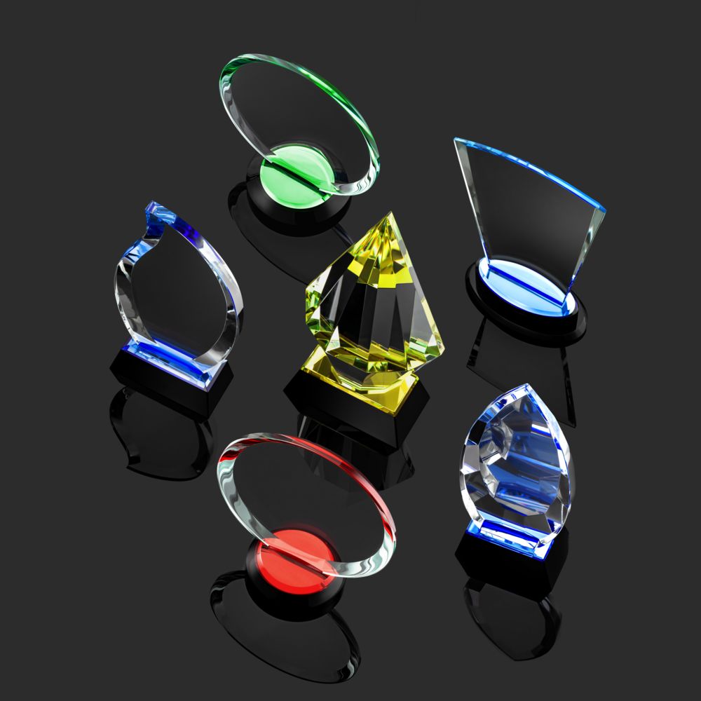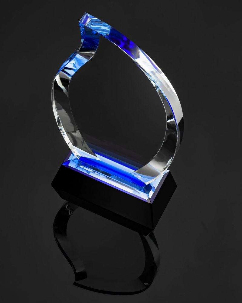 Стела изготовлена из стекла К9, в основе которого лежит оптическое боросиликатное стекло. Эту марку стекла отличает низкий процент посторонних включений, высокий показатель преломления и высокая прозрачность — идеальные качества для изготовления наград премиального уровня.