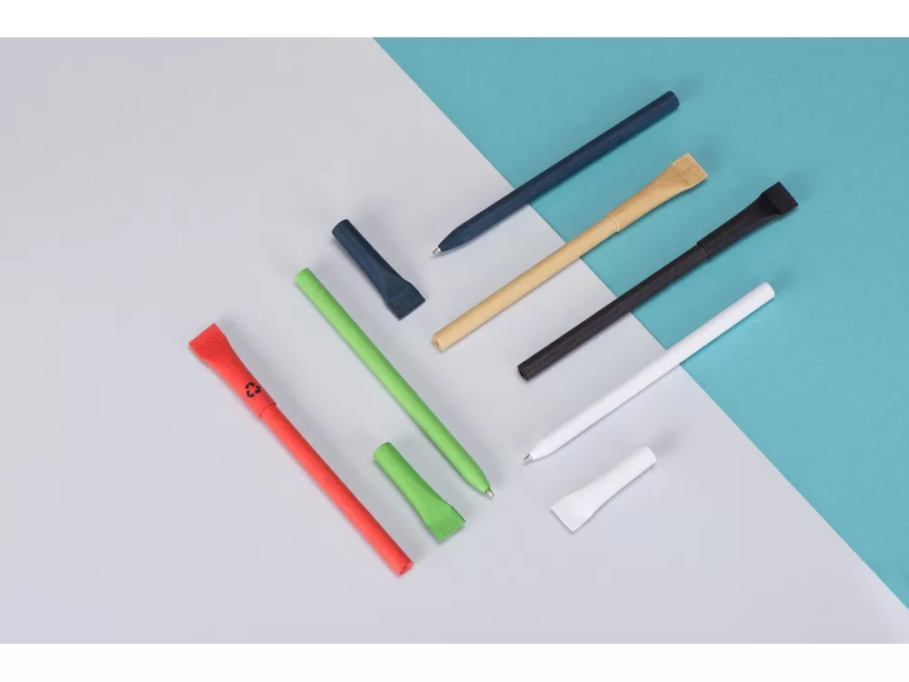 Ручка с корпусом из переработанной бумаги. Оригинальный дизайн, приятная на ощупь поверхность. Переработанная бумага позволяет легко делать нанесение как на теле ручки, так и на колпачке.