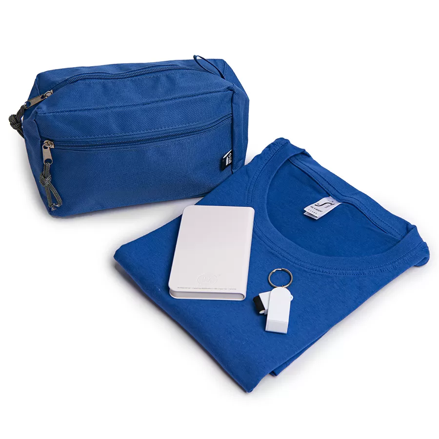 Набор подарочный GEEK: футболка S, брелок, универсальный аккумулятор, косметичка, ярко-синий