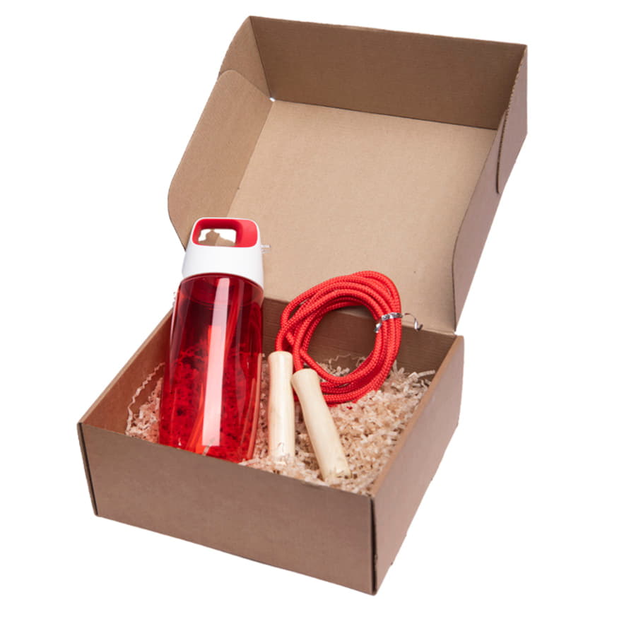 Набор подарочный INMODE: бутылка для воды, скакалка, стружка, коробка, красный