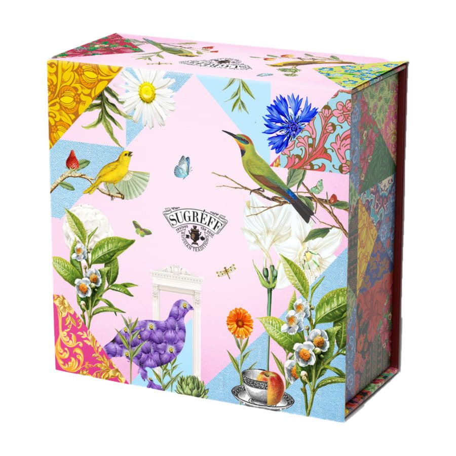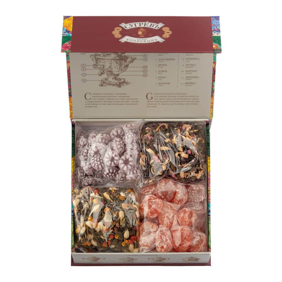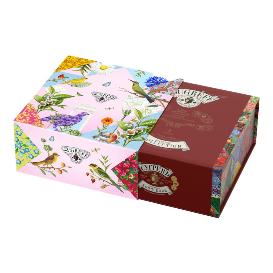 Вкусный и элегантный подарок. Набор представляет собой метафору весны. В шкатулке с великолепным дизайном вы найдете, как оригинальные чайные купажи с лепестками цветов, так и натуральные сладости: леденцы со вкусом смородины, кумкват.