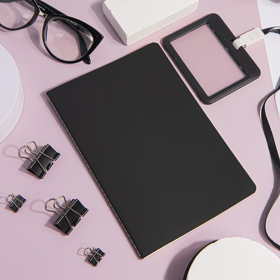 Тетрадь SLIMMY, 140 х 210 мм, черный с белым, бежевый блок, в клетку, черный, белый