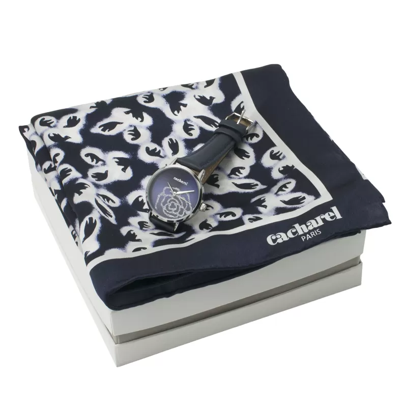Набор (платок шейный, часы наручные), темно-синий с белым