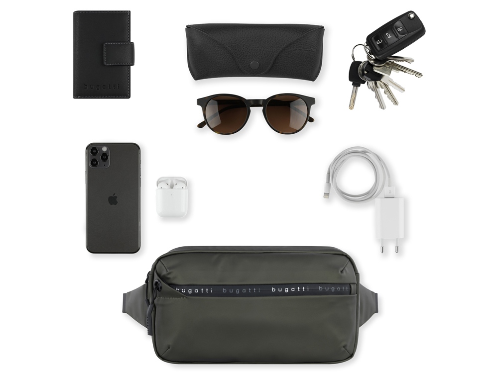 Сумка на пояс BUGATTI Blanc, оливковая, тарпаулин/полиэстер, 26х5,5х13,5 см