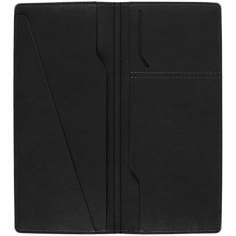 Имеет 5 отделений: для билетов, паспорта, визиток или кредитных карт.