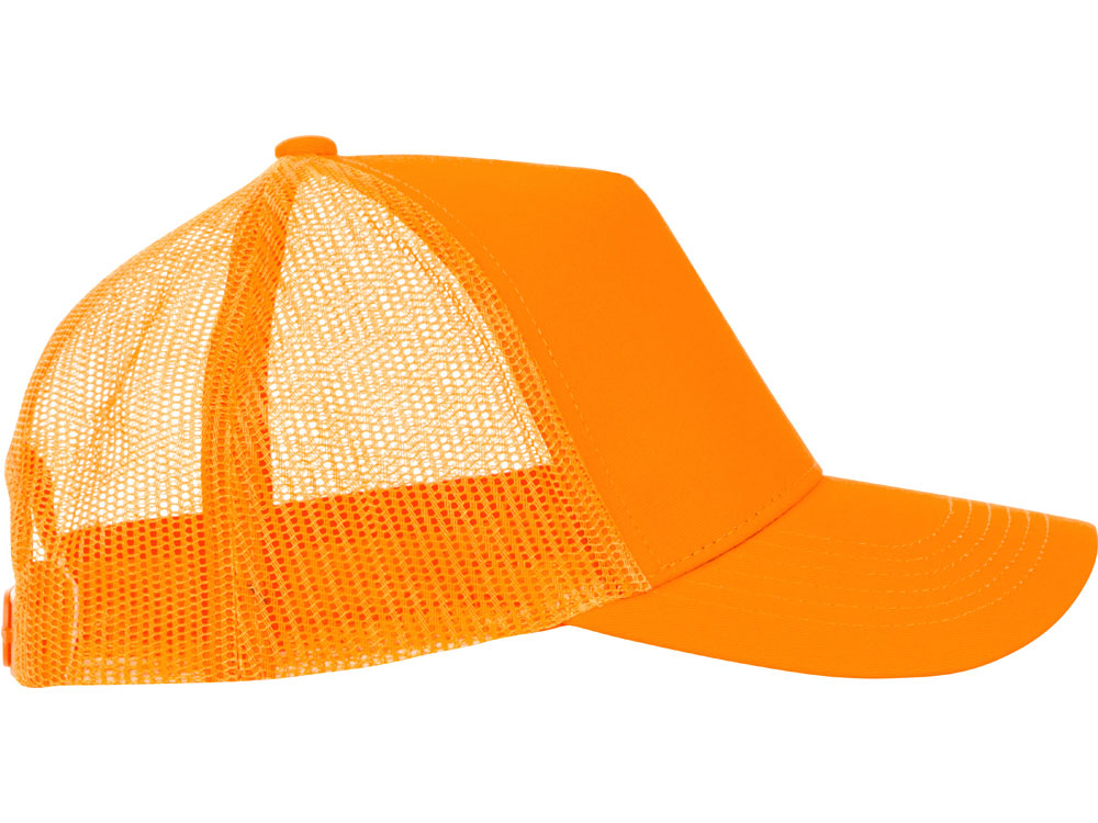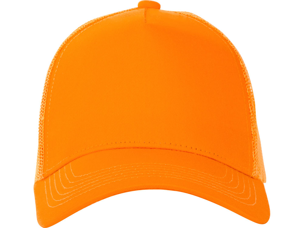 Пяти панельная бейсболка с передней частью из хлопка для комфорта головы и лба. Задняя часть из пластиковой сетки, которая отвечает за циркуляцию воздуха и обеспечивает изделию износостойкость. Для подгонки по размеру головы — пластиковая застежка.