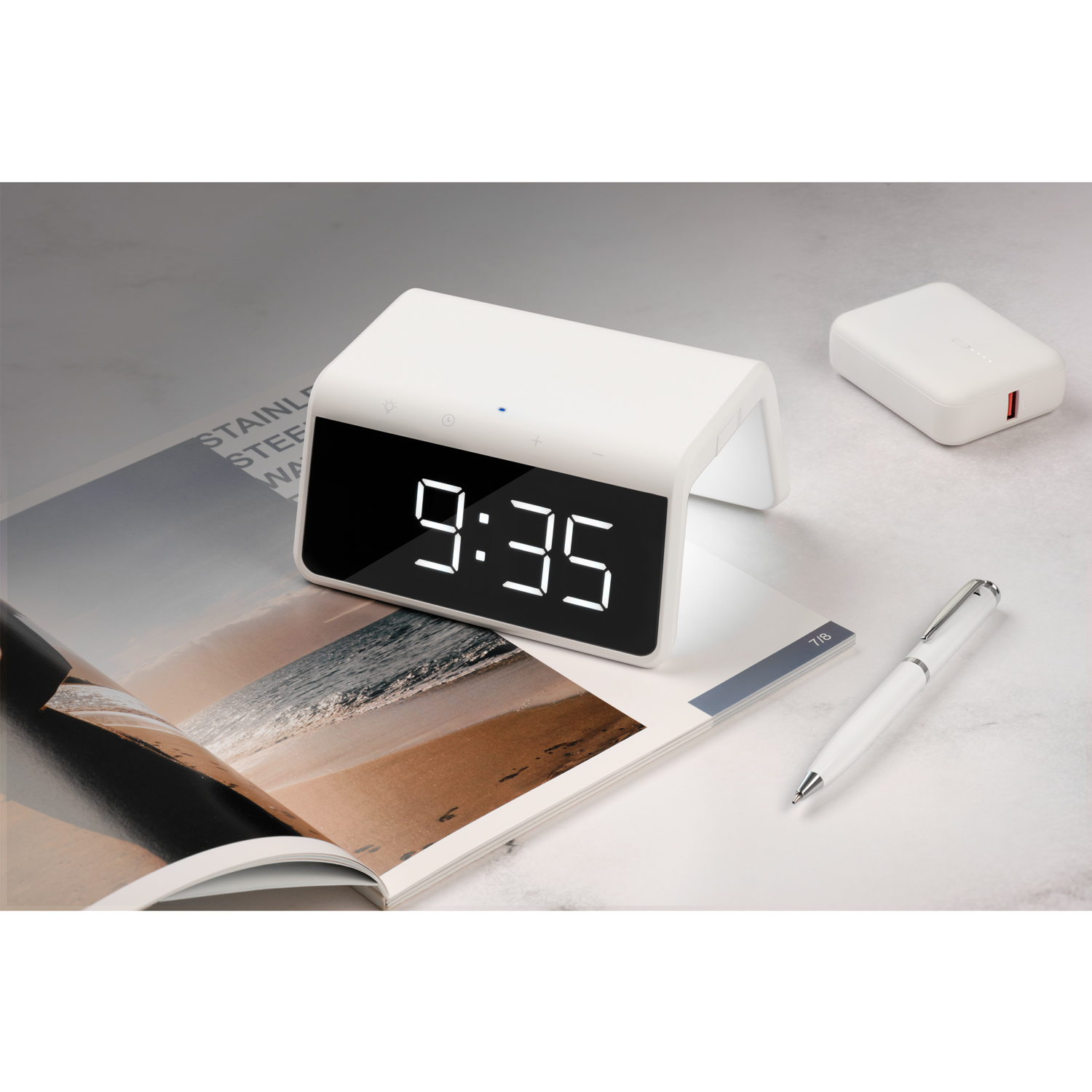 Зарядная станция с часами 15W Флейм (Flame), белая