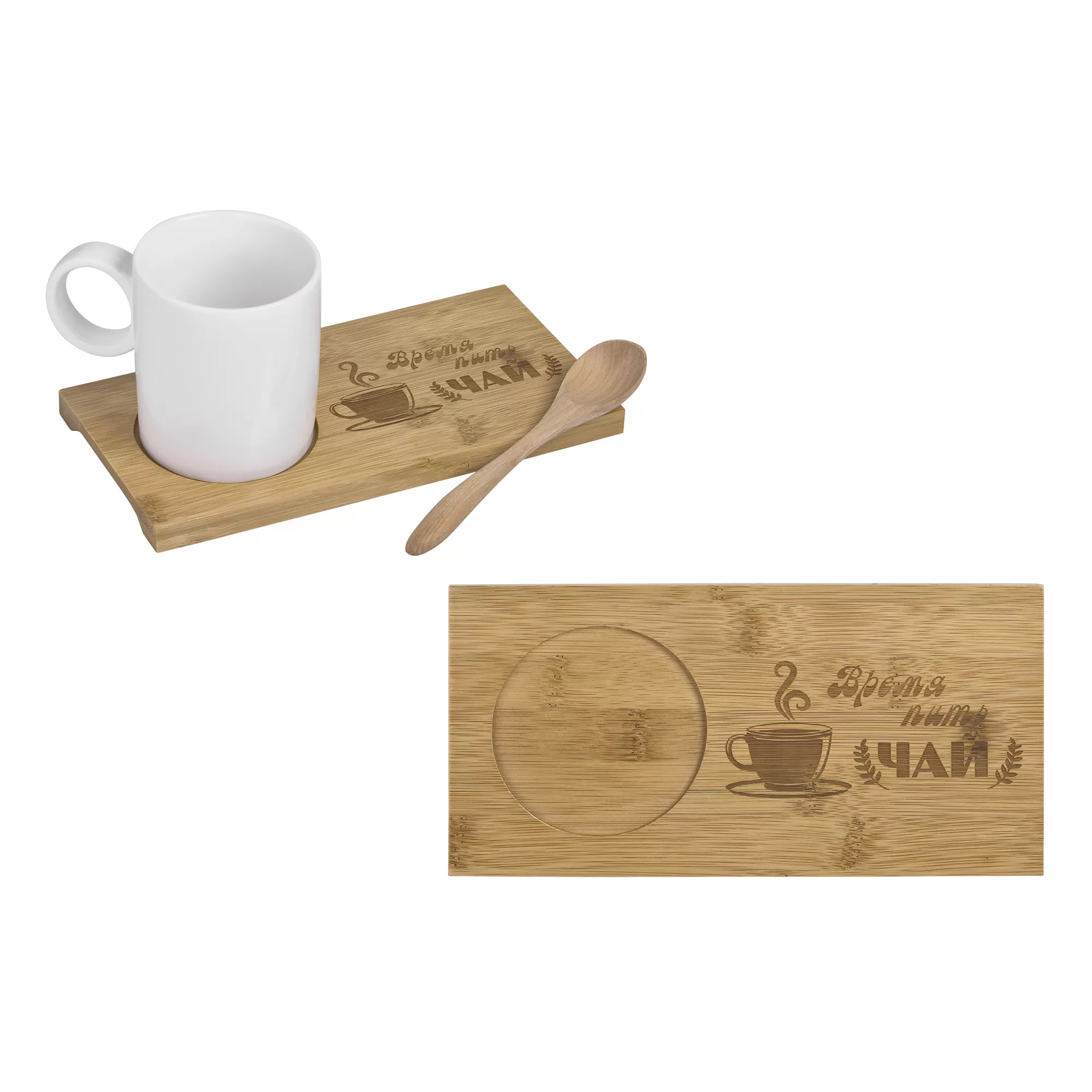 Набор состоит из фарфоровой кружки объёмом 230 мл, подставки и ложки из натурального бамбука. Комплект можно использовать в тематических сетах, эко-подборках и, конечно, как самостоятельный подарок.Поставляется в лаконичной крафт-коробке.