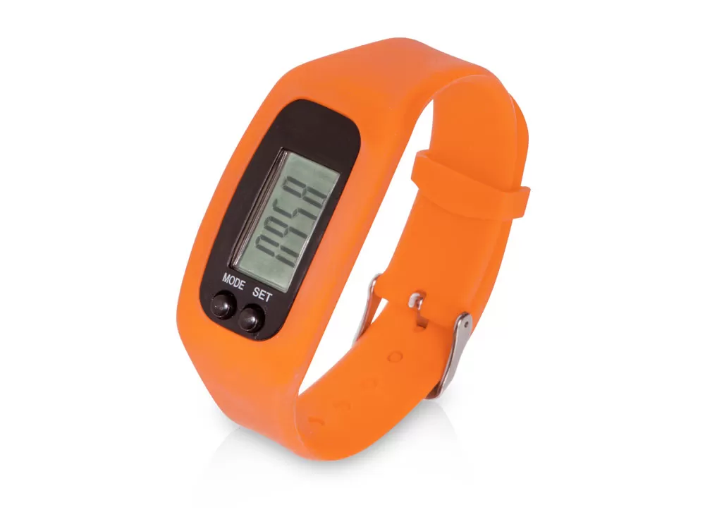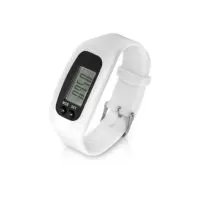 Наручные часы с возможностью отображения времени, калорий, шагов и дистанции. Есть переключение между метрической и британской системами измерений. На силиконовом ремешке можно сделать гравировку. Часы упакованы в пластиковую коробку, которую можно использовать для нанесения. Батарейка в комплекте.