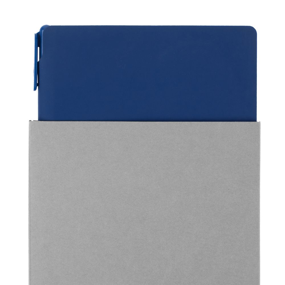 Удобный ежедневник с гибкой обложкой и местом под ручку в корешке, миниатюрная ручка из переработанного пластика и компактная самосборная коробка — простые составляющие полезного делового набора.
