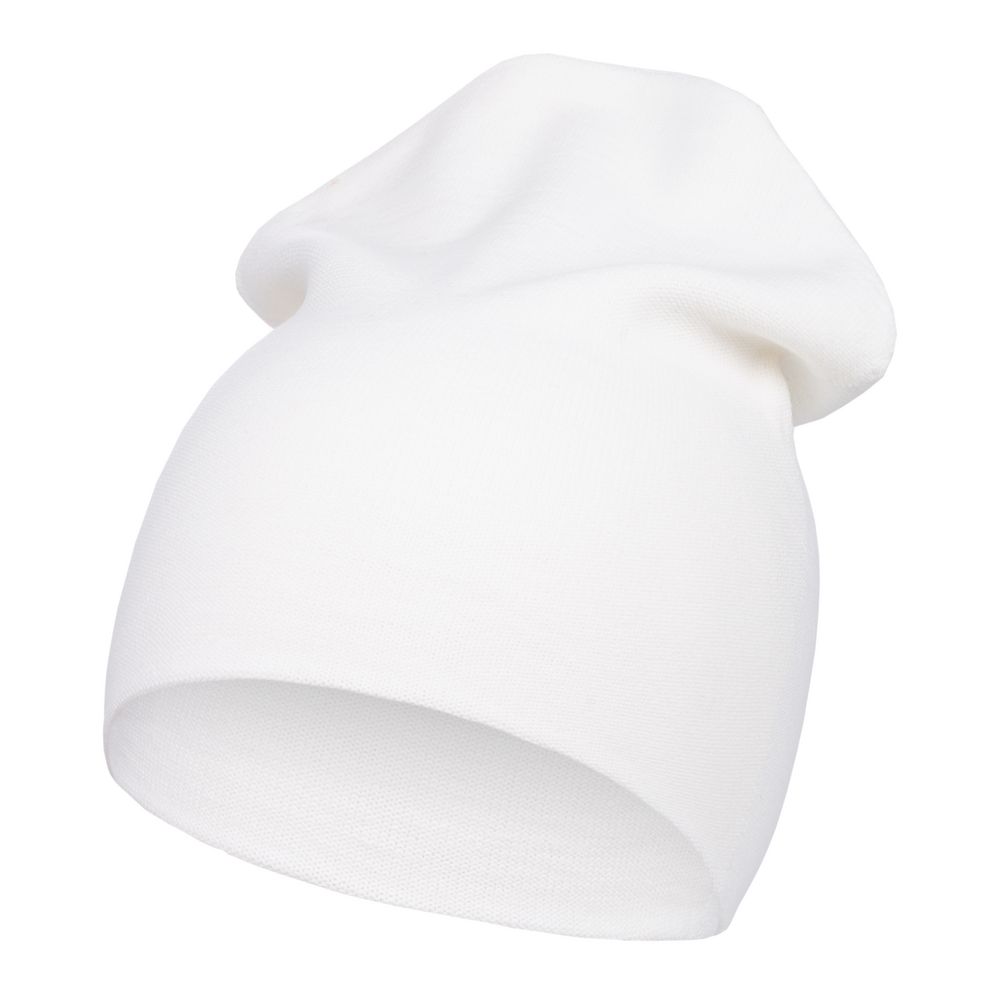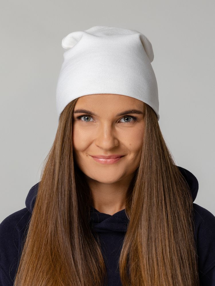 Двухслойная шапка-бини тонкой вязки, которую можно носить как с подворотом, так и без.