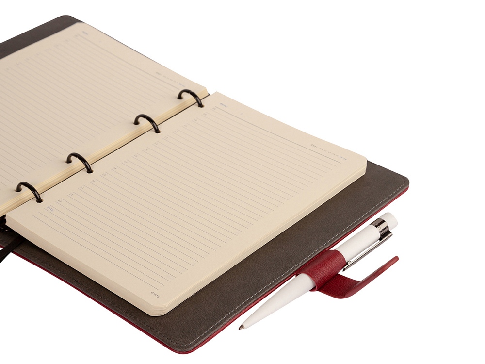 Недатированный ежедневник Toscana от Bruno Visconti на кольцах в твердом переплете – элегантный деловой аксессуар, подчеркивающий статус владельца с продуманным до мелочей функционалом: