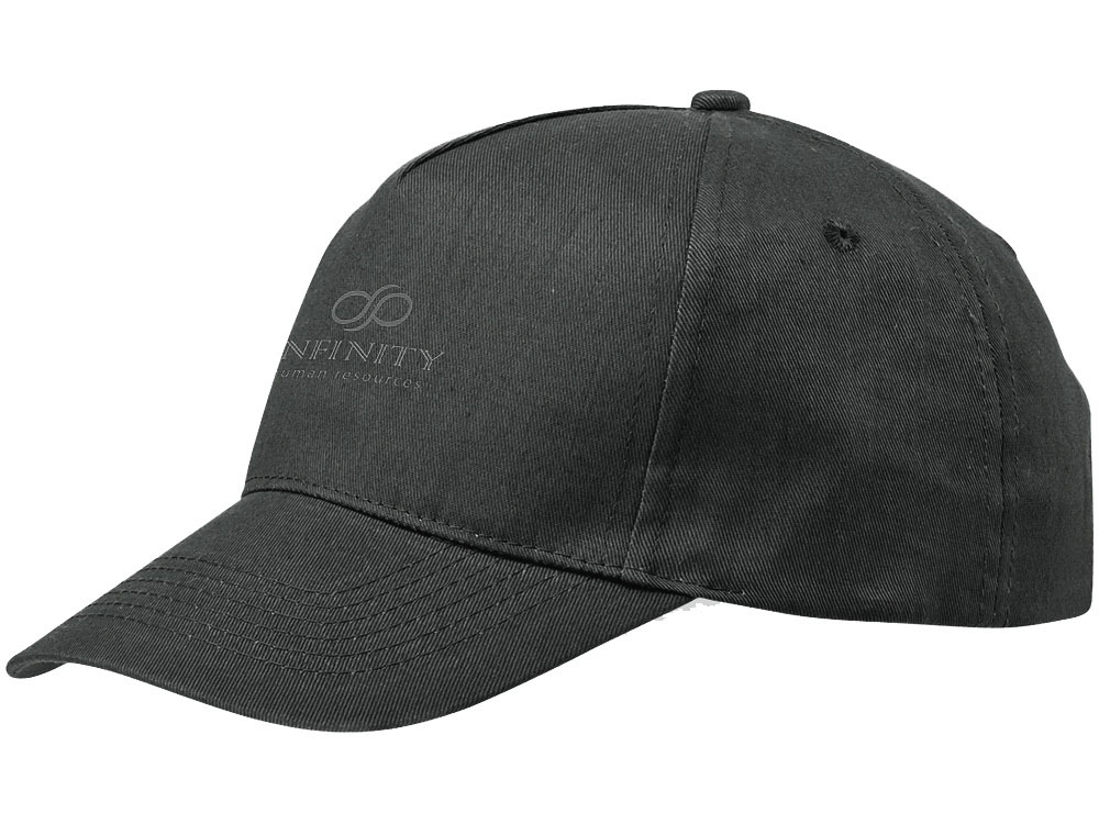 Отличная бейсболка из 5 панелей защитит от солнца. 5-ти панельная бейсболка выполнена из прочного хлопкового твила 230гр. Индивидуальный принт можно создать вышивкой либо при помощи термотрансфера